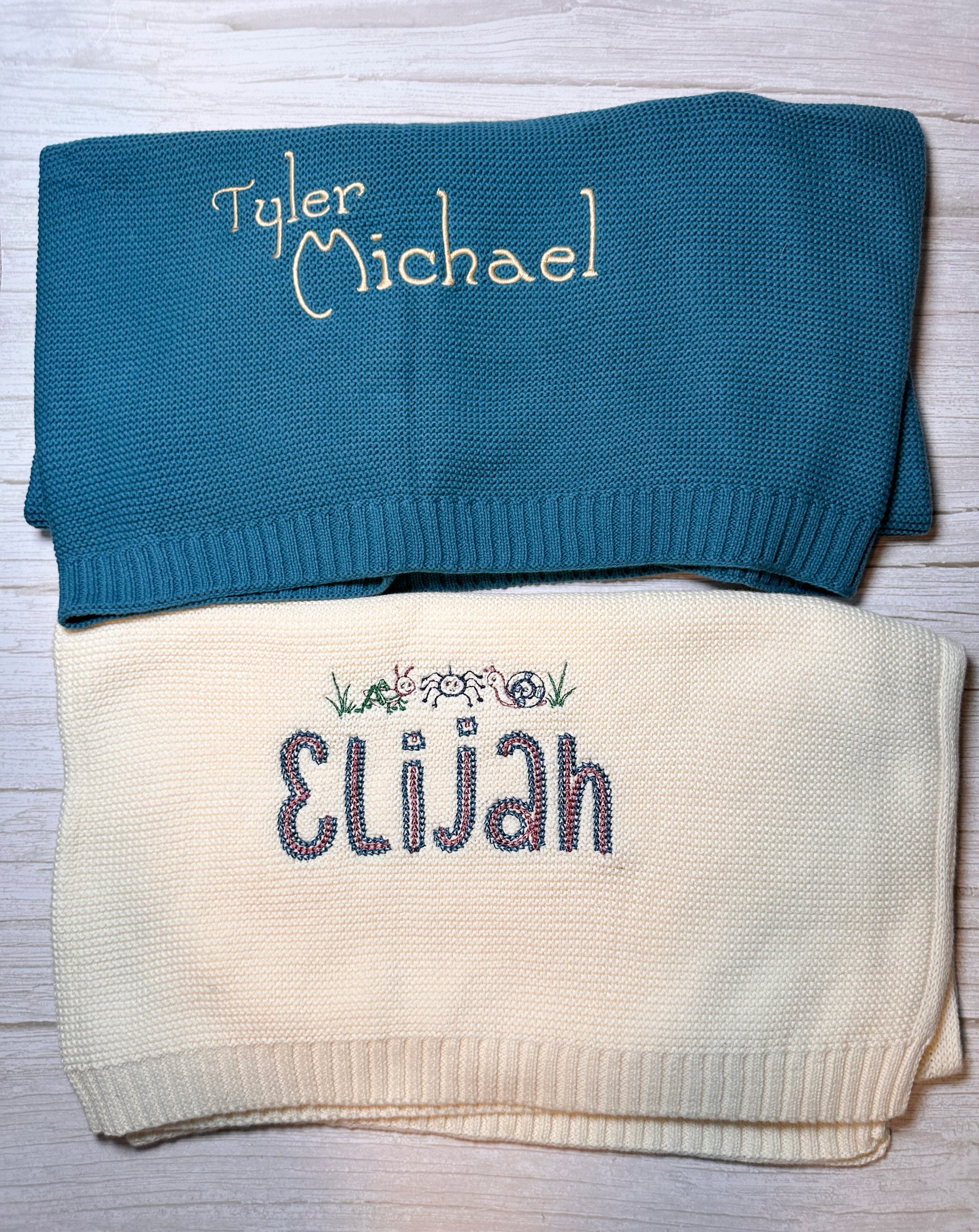 Soft knit 30x40 inch knit blanket. Great for travel or stroller blanket.
